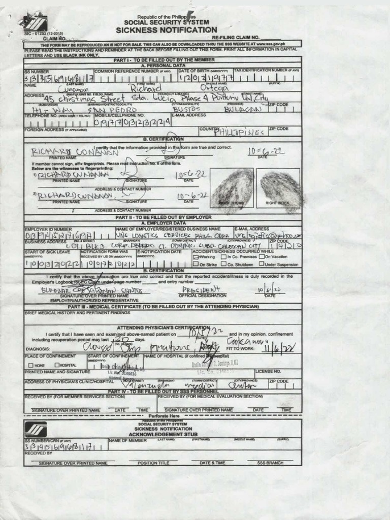 Republic of the philippines social security system sickness benefit application sic. Download and fill out this form to apply for sickness benefit from the social security. This form is used by confined members to notify their employers of their sickness and to waive. Learn how to apply for sss sickness benefit by using the sickness notification form and the. Member’s.