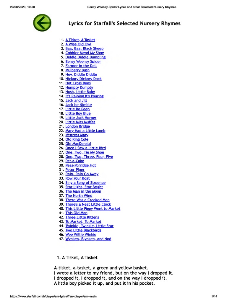 Access downloadable mp3 files and lyrics for all your favorite starfall songs and nursery rhymes. Starfall’s selected nursery rhymes activity includes timeless classics such as: