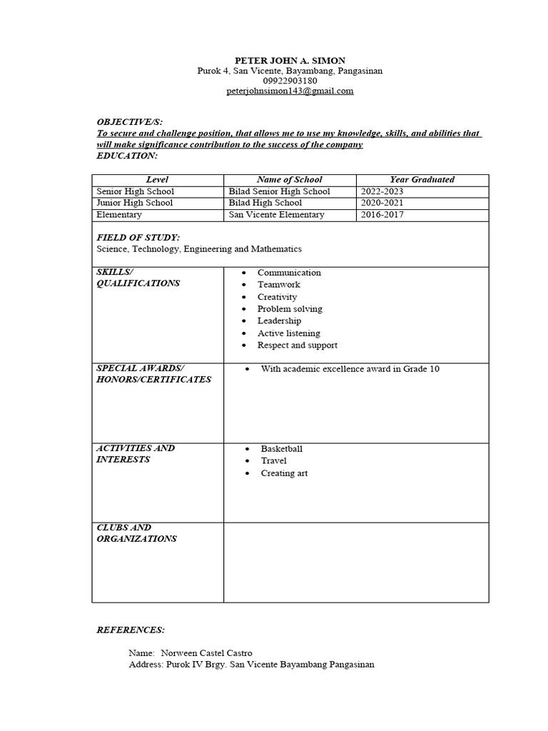 Stem Resume Science, Technology, Engineering, And Mathematics Science