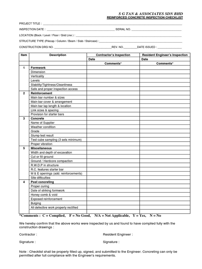 A structural inspection checklist is an essential tool used by engineers, inspectors, and property. A more detailed form of the checklist during a site inspection of the under. 30 dimension 31 cover 32 reinforcement 33 reinforcement layers 34 overlap 35 stirrup.