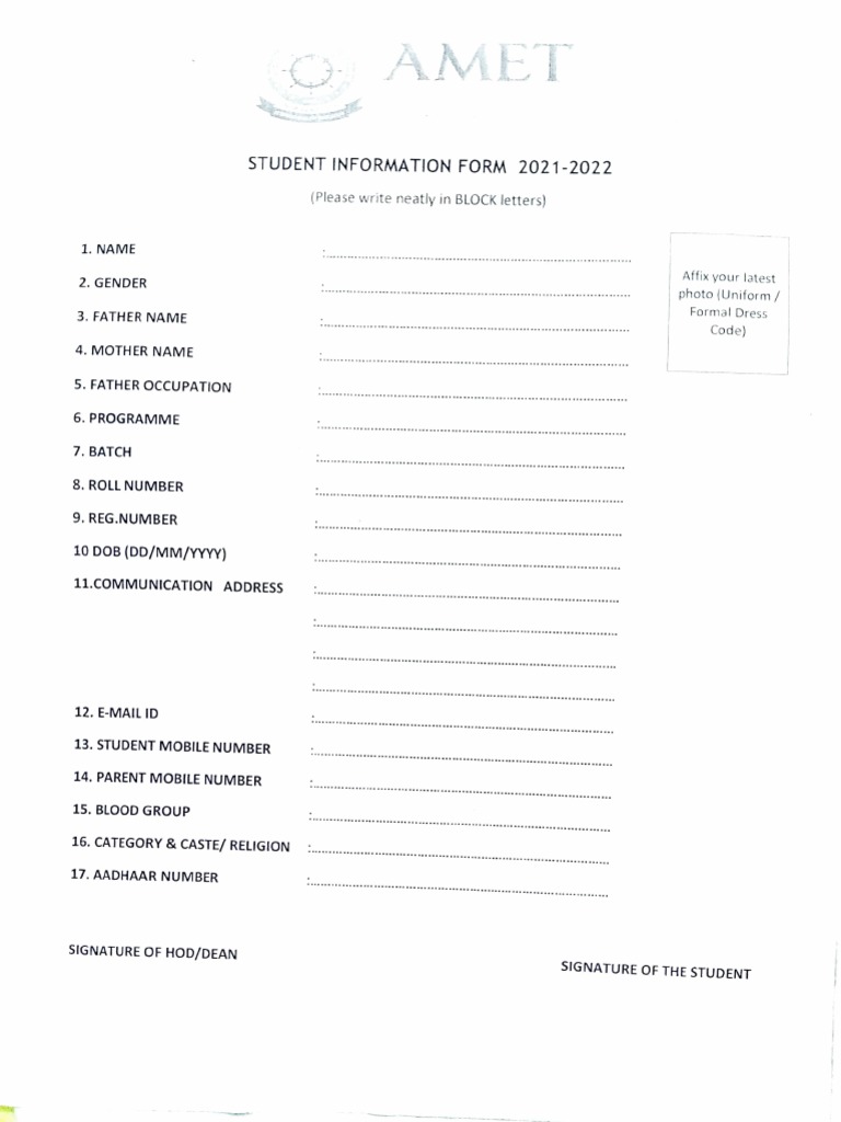 Student Information Form Student information form, Student