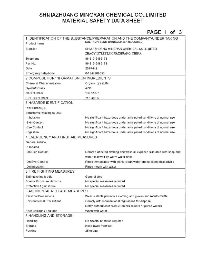 Material Safety Data Sheet for Sulphur Blue BRN Powder Providing