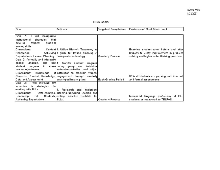 TTess Goals Sheet1 PDF