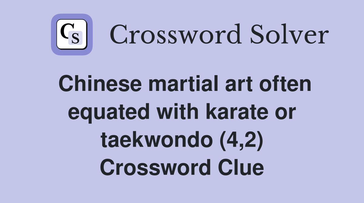 The crossword solver found 30 answers to tai ___ (chinese martial art), 3 letters crossword clue. Here is the answer for the crossword clue tai ___ (martial art) featured on. The crossword solver found 30 answers to tai ___ martial art, 3 letters crossword clue. Please find below the tai ___ (martial arts) crossword clue answer and solution which is..