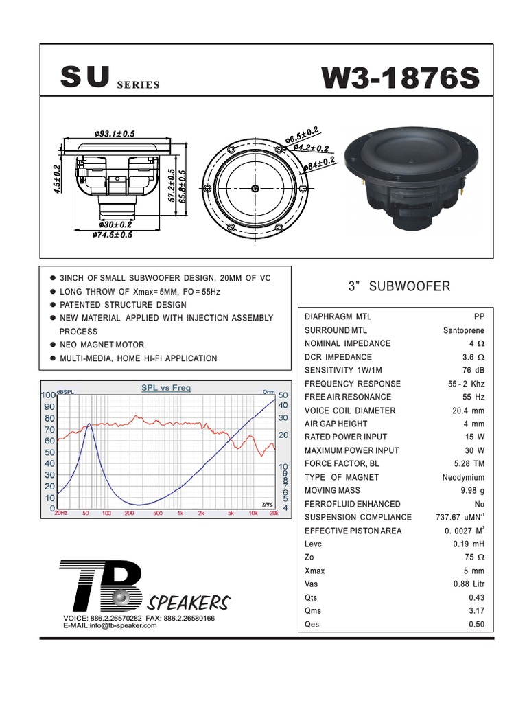 264 909 Tang Band w3 1876s Spec Sheet PDF