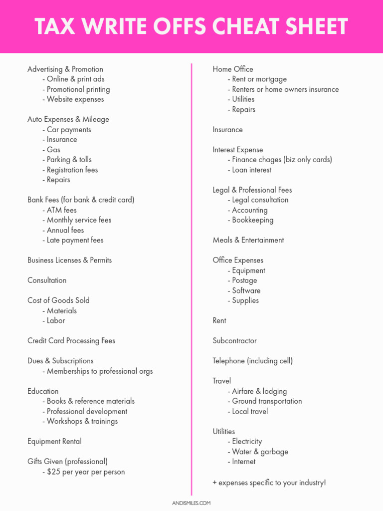 Tax Write Off Cheat Sheet PDF Fee Renting