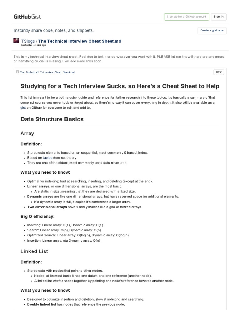Technical Interview Preparation Cheat Sheet.. This will save a lot of
