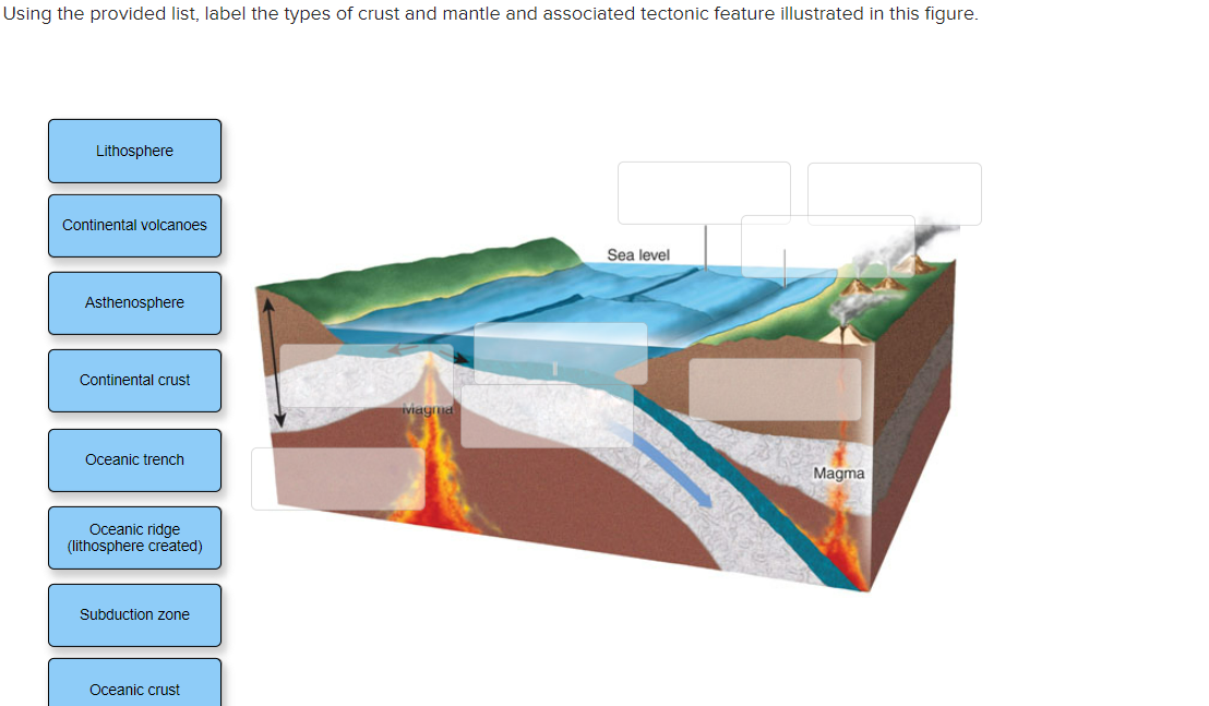 Solved Using the provided list, label the types of crust and