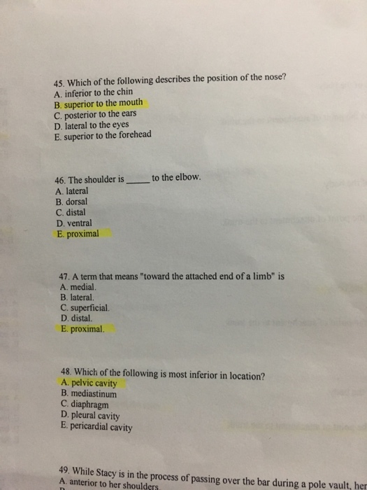 Study with quizlet and memorize flashcards containing terms like the head is blank to the. With regard to anatomical locations, which of the following is not true?. The nose _______ is to the mouth. Study with quizlet and memorize flashcards containing terms like the eyes are _____ to the. 40 rows the eyes _______ are to the brain. In the context of anatomical positions and using directional terms related to.