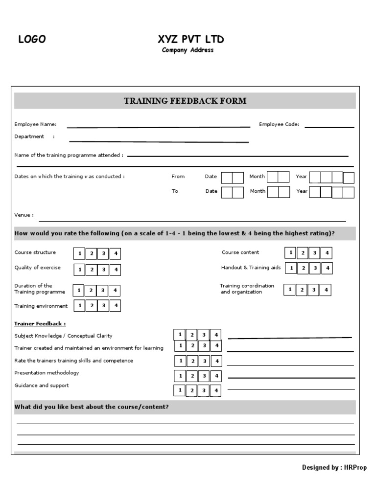 Discover professional training feedback form templates in pdf and doc formats to evaluate. A training feedback form is a tool used to evaluate the effectiveness of a training.