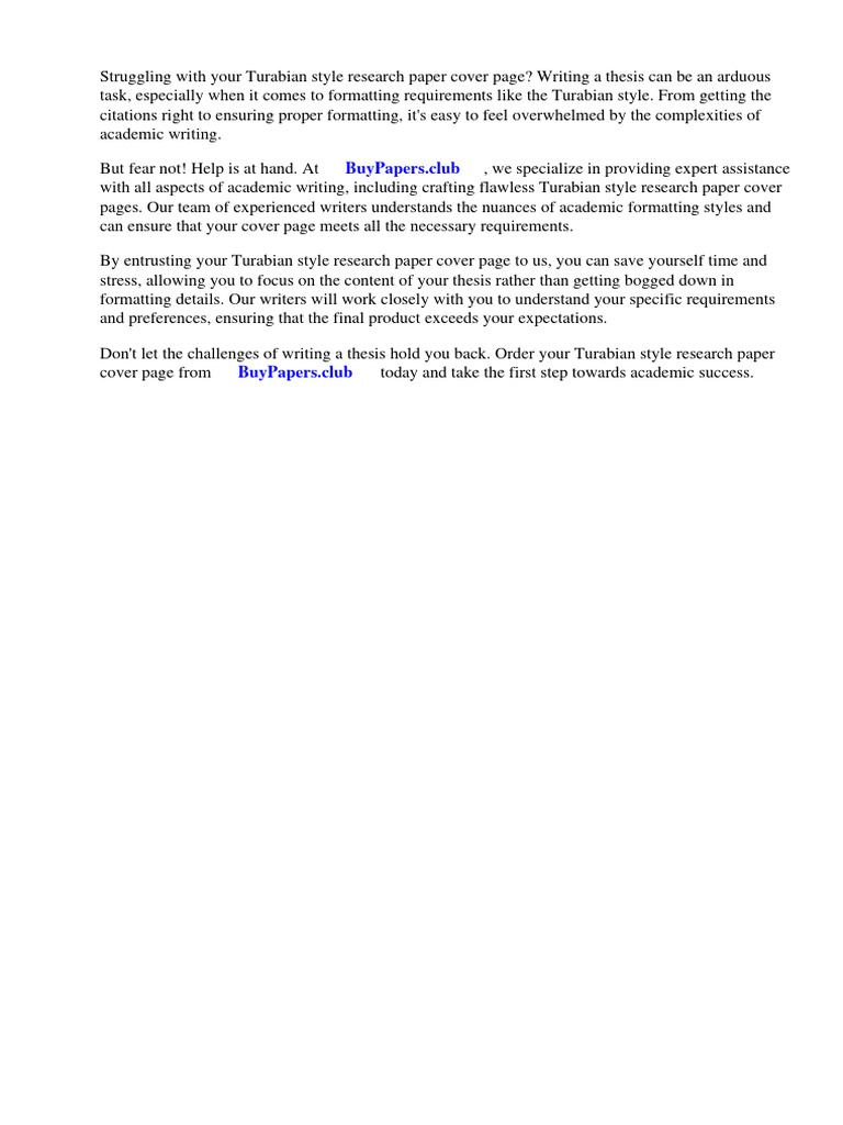 Turabian Style Research Paper Cover Page PDF A Manual For Writers