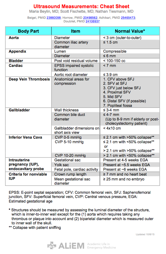 Ultrasound Measurement Cheat Sheet PDF Vein Heart
