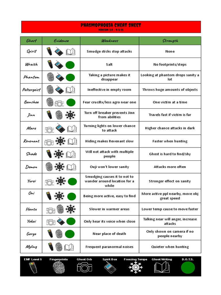 Unofficial Phas Cheat Sheet - The unofficial phasmo cheat sheet is the ultimate cheat sheet for the popular horror video game phasmophobia. It includes features such as.