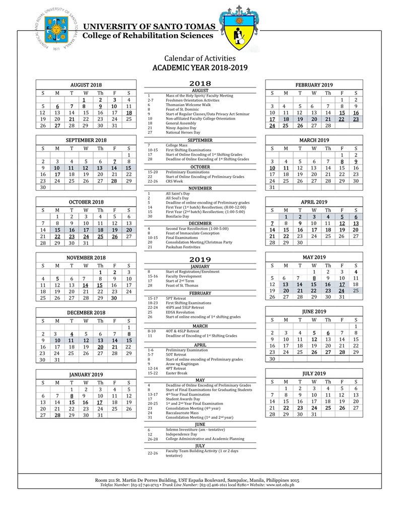 Academic Calendar University of Santo Tomas
