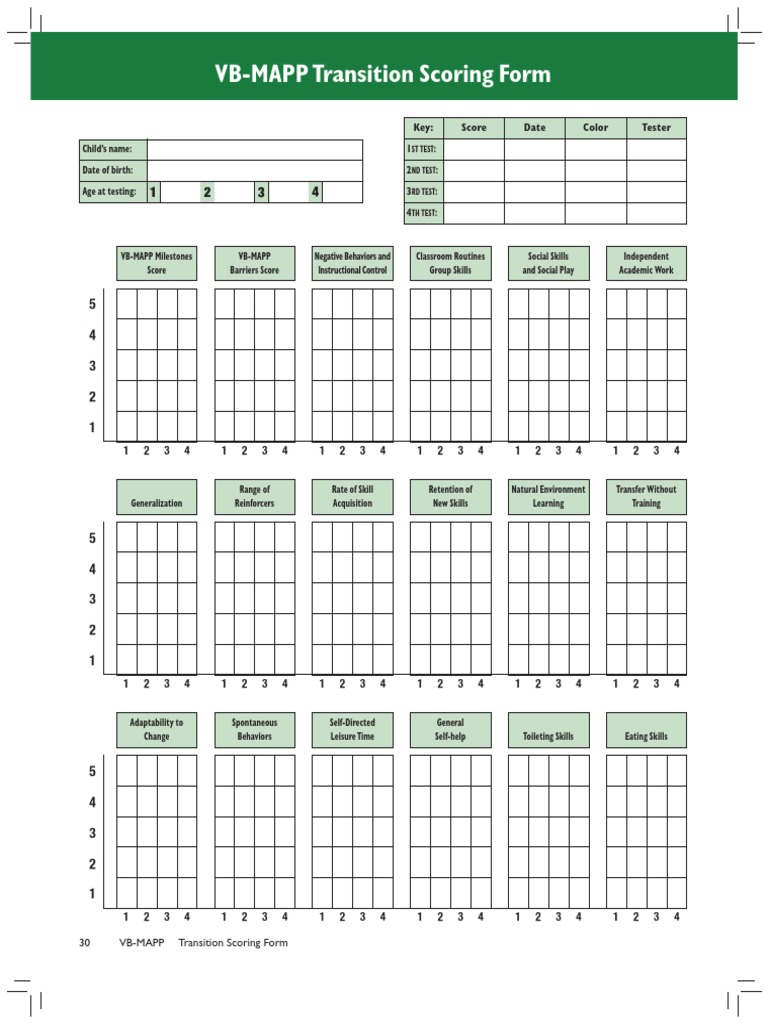 Vb Mapp Score Sheet - 12 tact 4 prepositions and 4 pronouns (see appendix below) total. It includes reminders on how to fill out the protocol and some tips for administration. Score 1 if student responds to all items correctly. Score ½ if student can tact 2 features or functions of all 5 items. 1 2 3 4 key: