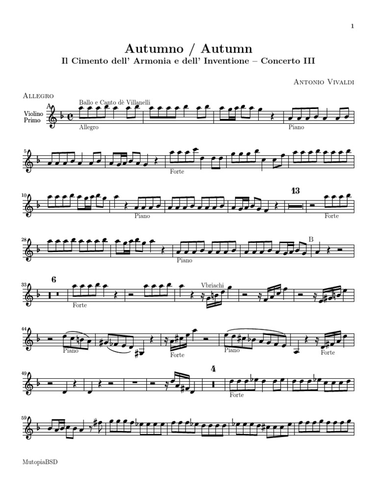 3 (rv 293), autumn (l'autunno) by antonio vivaldi Title l'autumno (autumn) from le quattro stagioni (the four seasons) name translations concerto no. 3 in f major, op. Violin concerto in f major alt ernative. Make your first steps on the violin easier with our sheet music designed for beginners.
