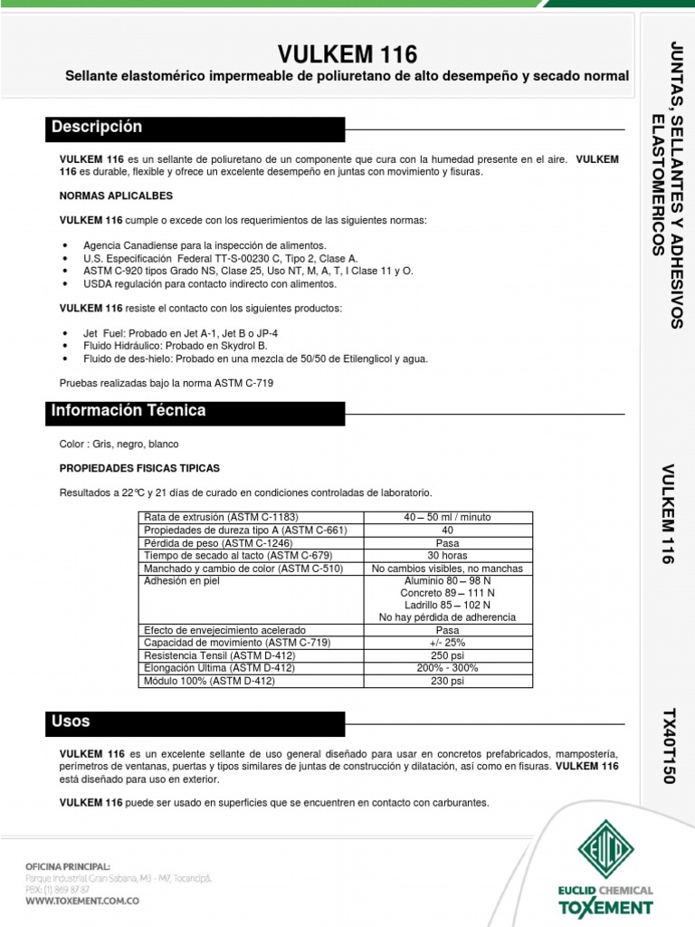 Vulkem 116 PDF Materiales Química