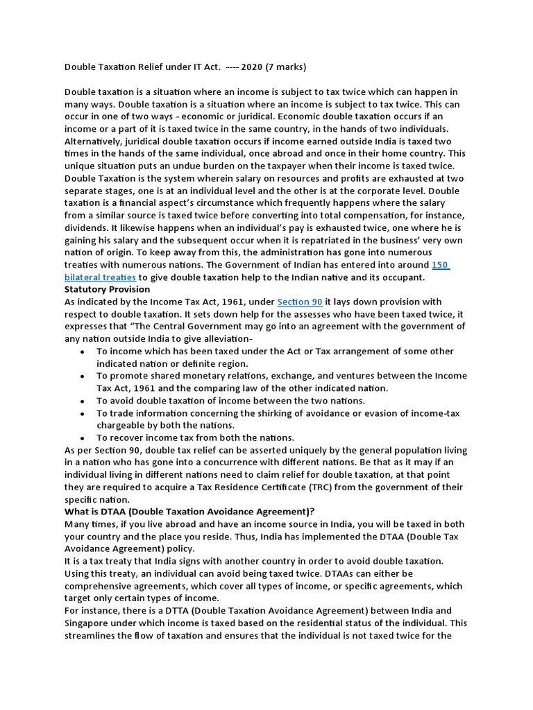 Double Taxation Relief Under IT Act PDF Double Taxation Taxes