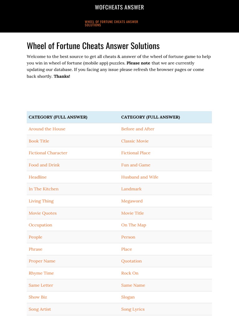 Wheel of Fortune Answer Cheats PDF