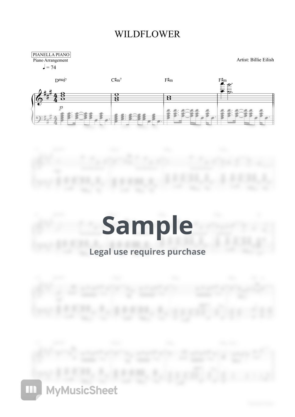 Billie Eilish WILDFLOWER (Piano Sheet) Sheets by Pianella Piano