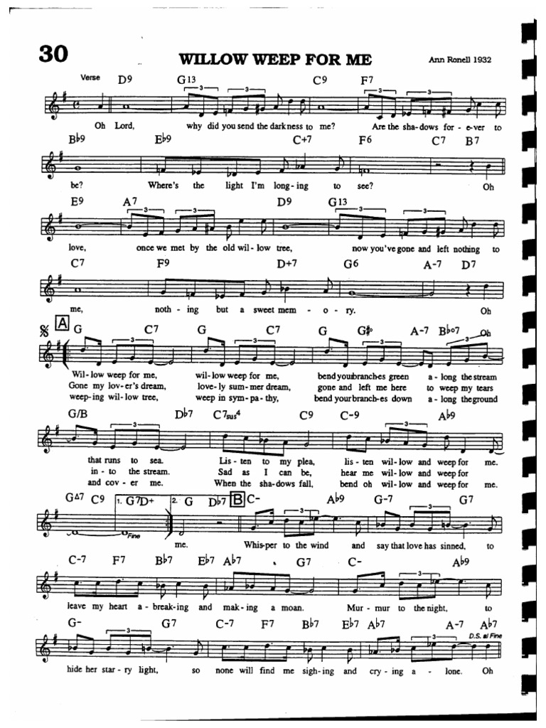 Purchase and print sheet music now! Willow weep for me (lead sheet / fake book). Share, download and print free sheet music of willow, weep for me [lead sheet] ann ronell for piano, guitar, flute and more with the world's.