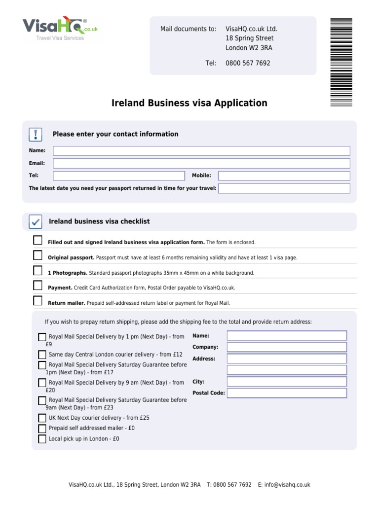Ireland Application for ReEntry Visa Fill and Sign Printable
