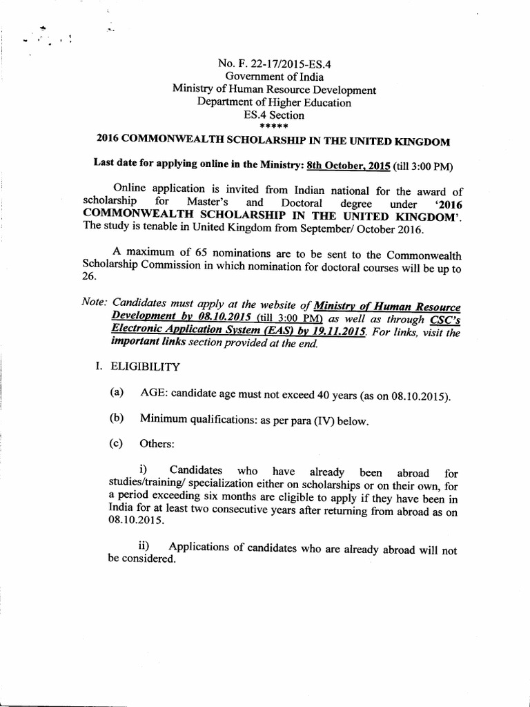 2016 Commonwealth Scholarship PDF Doctor Of Philosophy Academic