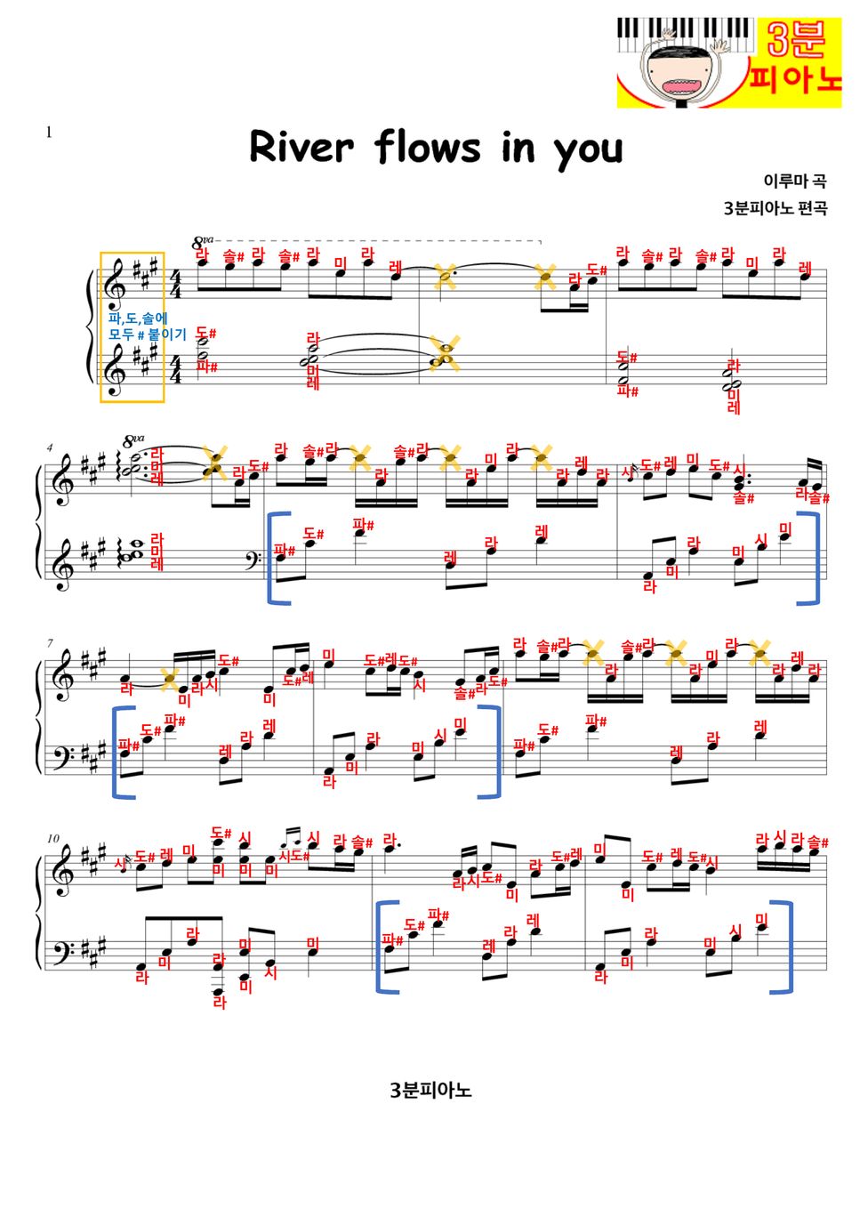 River flows in you , yiruma 계이름악보 +그냥악보 Easy sheet Sheets